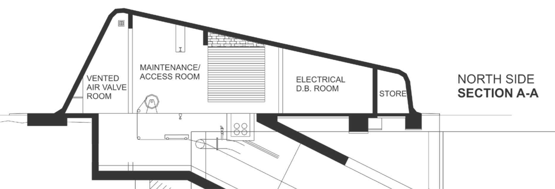 The service structure and access point for the Durban harbour acts as a filtration device, allowing for significant ventilation into the tunnel below. These ventilation elements have been concealed into the architecture.