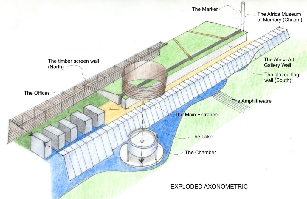 The intangible aspect of ‘African Memory’ is illustrated by the construction of the iconic chamber which contrasts the linear gallery.