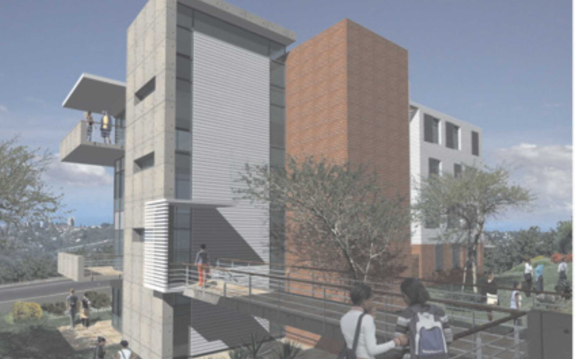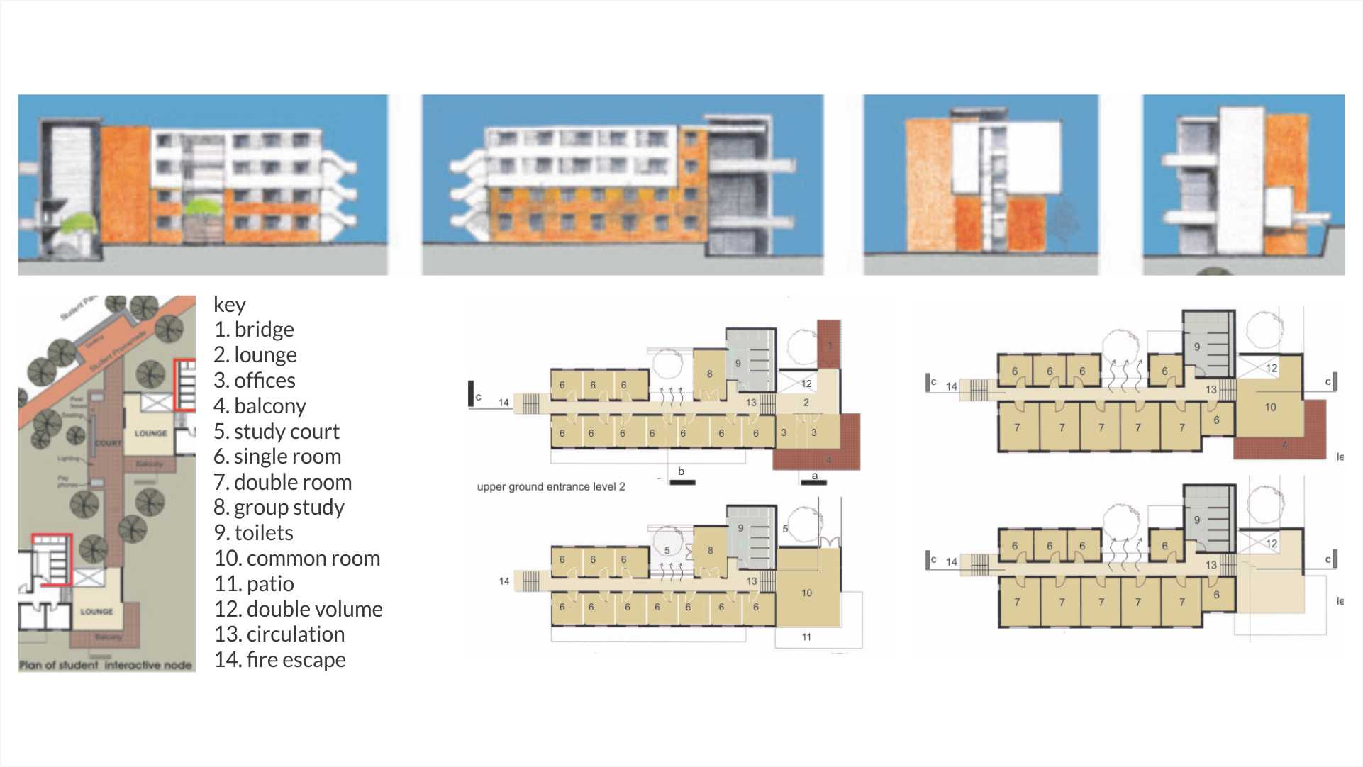 A joint venture design competition for student housing. The scheme drew inspiration from urban model mixed use developments in order to deconstruct the severe institutional identity of the campus context.